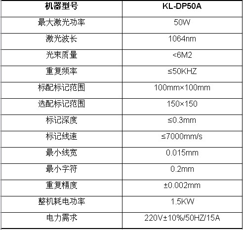 • 打标软件: 打标软件采用Windows界面,可兼容Coreldraw,Auto CAD,Photoshop等软件的输出文件,支持PLT,PCX,DXF,BMP等文件格式;直接使用SHX,TTF字库,支持自动编码,序列号,批号,日期,条形码及二维码的打标,软件具体有图形反打功能。